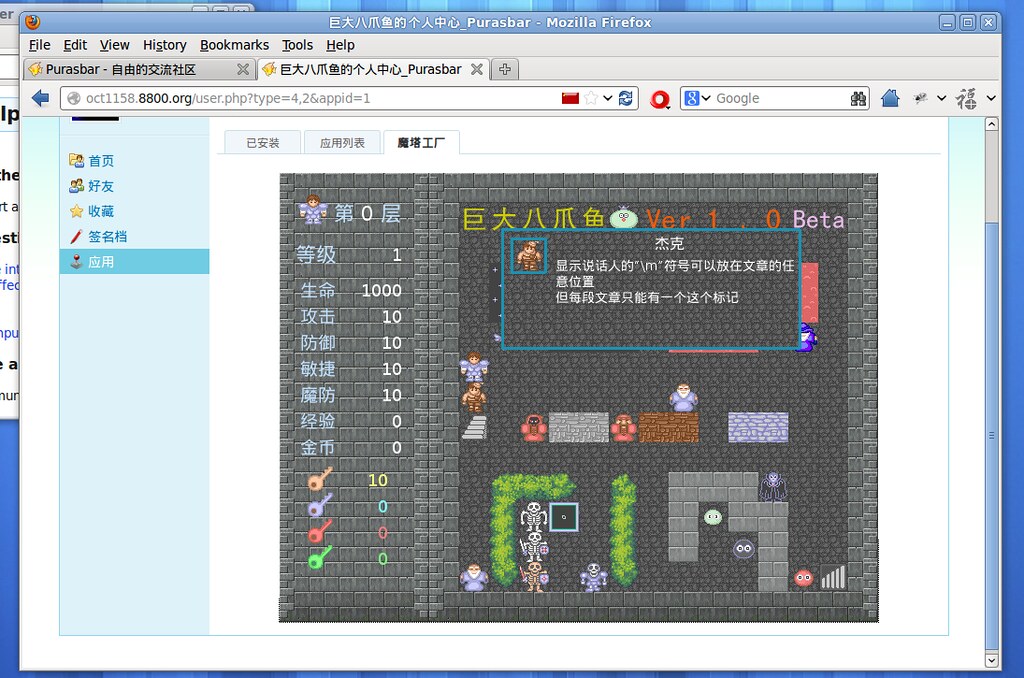 【预告】flash版魔塔工厂与传统魔塔的一个不同之处在flash魔塔工厂中,哪天突然出现一个楼梯、一个老人(包括对话内容)、一只怪物,甚至多出好几层楼层,或者楼层的地图完全改变都是很正常的情况。因为我会根据需要,随时更新游戏内容。...