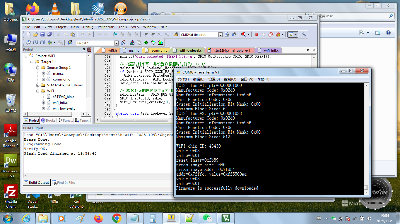 STM32F407ZG单片机SDIO驱动CYWL6208-GS WiFi模块下载固件成功 [圖片]STM32F407ZG单片机SDIO驱动CYWL6208-GS WiFi模块下载固件成功,并且SDIO Function 2能成功启动。