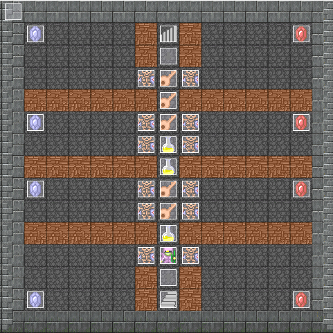 對上面的問題的解答: 正如XC所說的, 路線單一、怪物單一,密地和空地分佈不均勻,而且沒有充分利用地形。怪物的存在感不明顯。 這裏只有一堆骷髏,一個骷髏守一個寶石,不要說沒有足夠的思考空間,就是看着這個地圖也覺得這麼設計價值不大。 大空房間和直線,都很單調,破壞了地圖的整體感。 所以說不科學的地圖往往也不美觀。