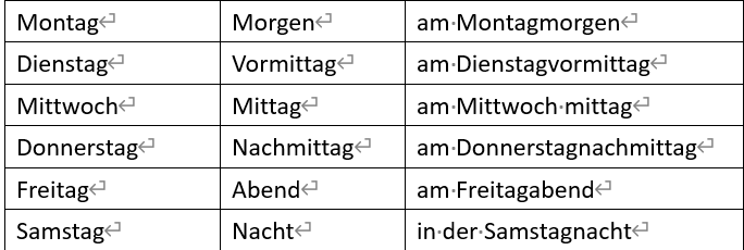 • das Wochenende -> am / an dem Wochenende 在周末 • unter der Woche在工作日(周一到周五)... ![]() |
