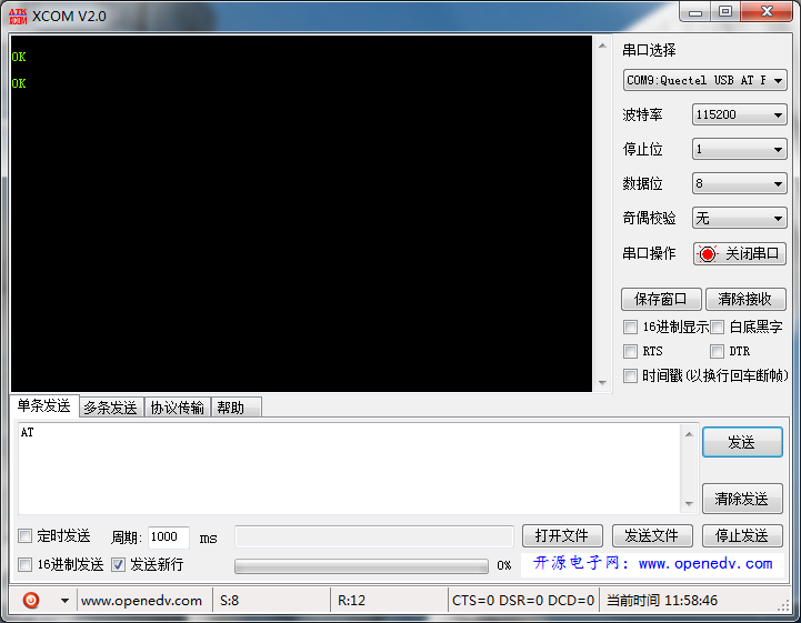 回覆:移远EC200A模块USB接口插入电脑后,会出来4个USB设备 [圖片]用串口调试助手连接Quectel USB AT Port (COM9),发送AT指令有回应,波特率可随意设定。