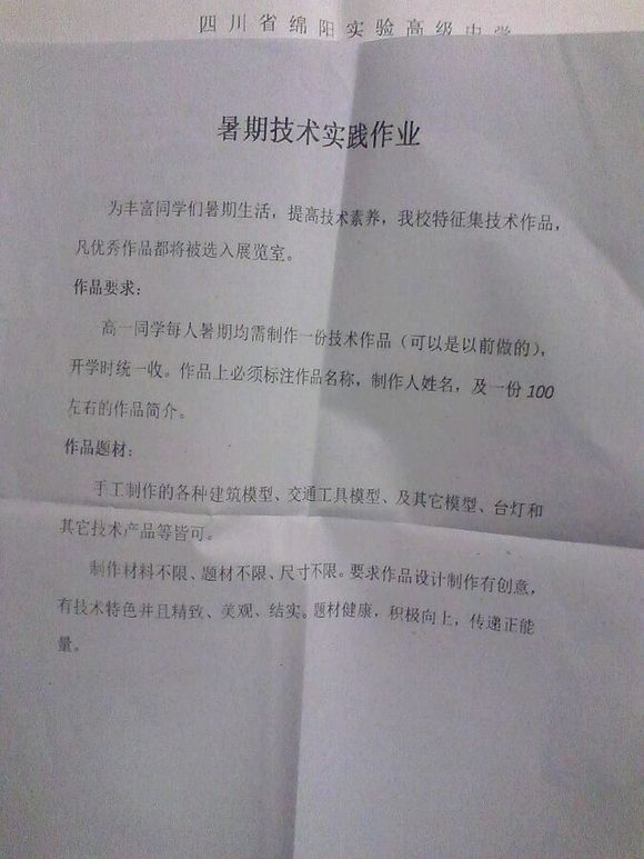 绵阳实验高中给高一新生留的暑假作业 [圖片]http://tieba.baidu.com/p/3980507496