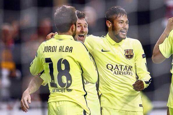 北京时间11月6日凌晨3点45(当地时间11月5日晚间20点45),2014-15赛季欧冠小组赛F组一场焦点战在阿姆斯特丹竞技场展开争夺,西甲豪门巴萨客场挑战荷甲老牌豪门阿贾克斯。上半场梅西头球破门,巴萨1-0领先;下半场阿贾克斯中卫费尔特曼染红,梅西再入一球,欧冠71球超过C罗的70球纪录并追平劳尔纪录。巴萨2-0完胜阿贾克斯,欧冠4轮3胜1负拿到9分,同组另一场比赛巴黎1-0胜希腊人竞技,因此巴萨最终与拿到10分的巴黎圣日耳曼携手晋级欧冠16强