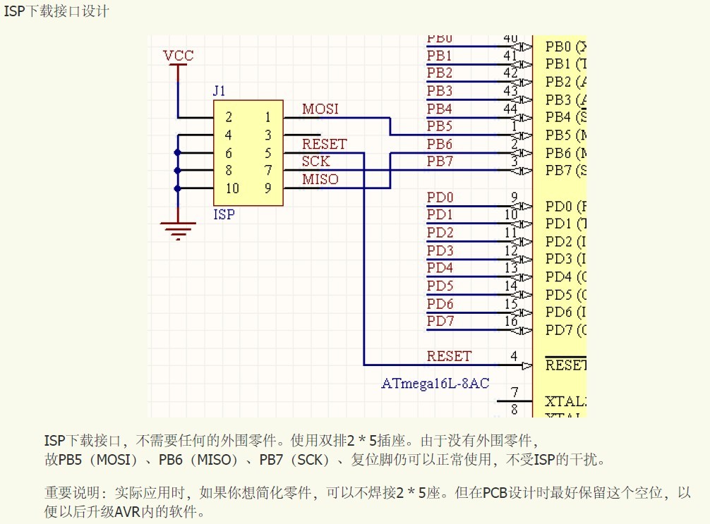 第1腳接正常的AVR RESET電路,和ATMega16一樣,電容10μF。