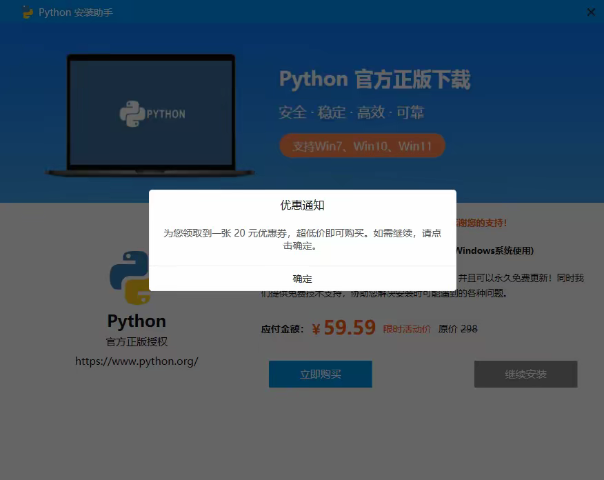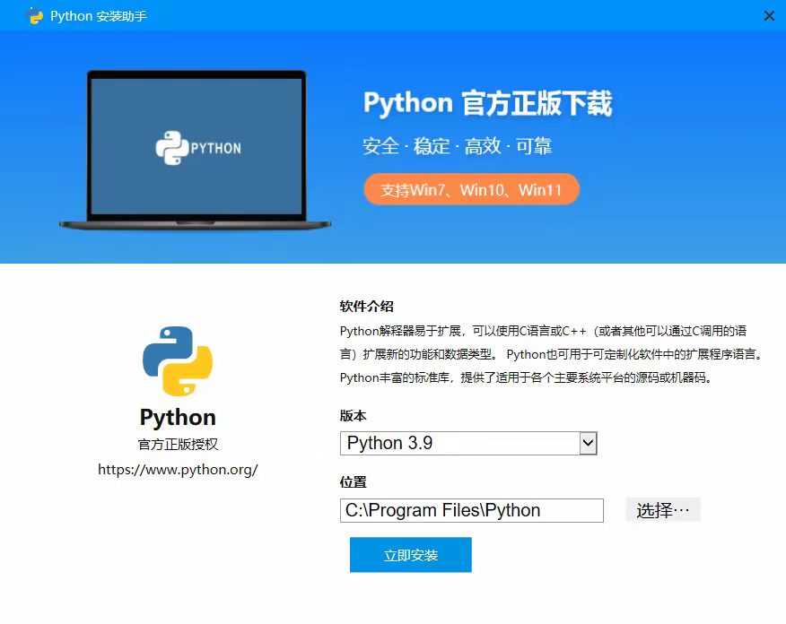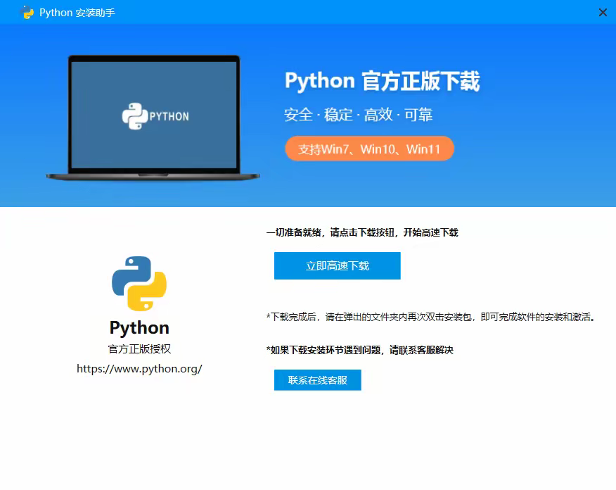 搜索“Python官方正版下载”,下载“Python安装助手”。