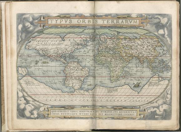 Ortelius)1570年出版的世界地图及其斯多葛主义的隽语。得克萨斯大学奥斯汀分校,哈里·兰塞姆人文研究中心(Harry Ransom
