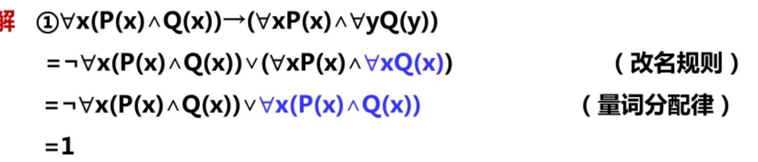 右边 ∀xP(x) ∧ ∀xQ(x):论域里所有个体都满足 P (x),并且论域里所有个体都满足 Q (x)