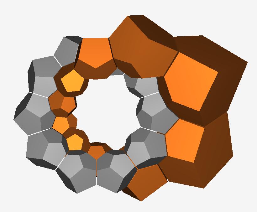 拿出其中几个正十二面体表面来看的双环  120-cell的二胞角是144°,求法http://tieba.baidu.com/f?kz=1046741707
