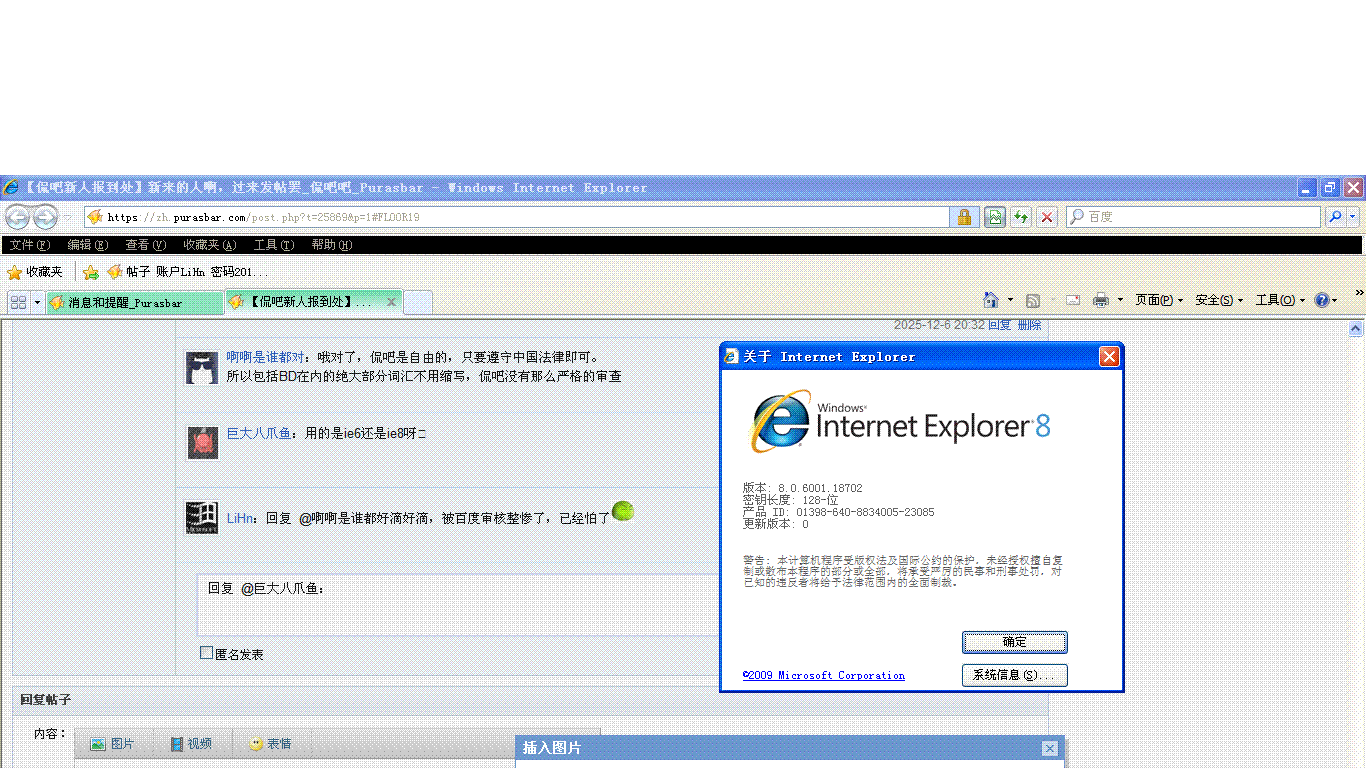 IE8哦,我之前用的IE6可是啥网页都打不开的还报错,IE8是xp上能安装的最新的IE浏览器 ![]() |